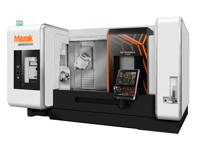 INTEGREX i-300S advanced Multi-Tasking machine delivers maximum versatility, high precision and throughput for medium to large complex parts. The machine combines the capabilities of a high-powered turning center and full-function machining center to produce parts in single setups. This machine configuration features second turning spindle (S) for Done-In-One machining and works to minimize fixtures, tools, handling and non-cut time.